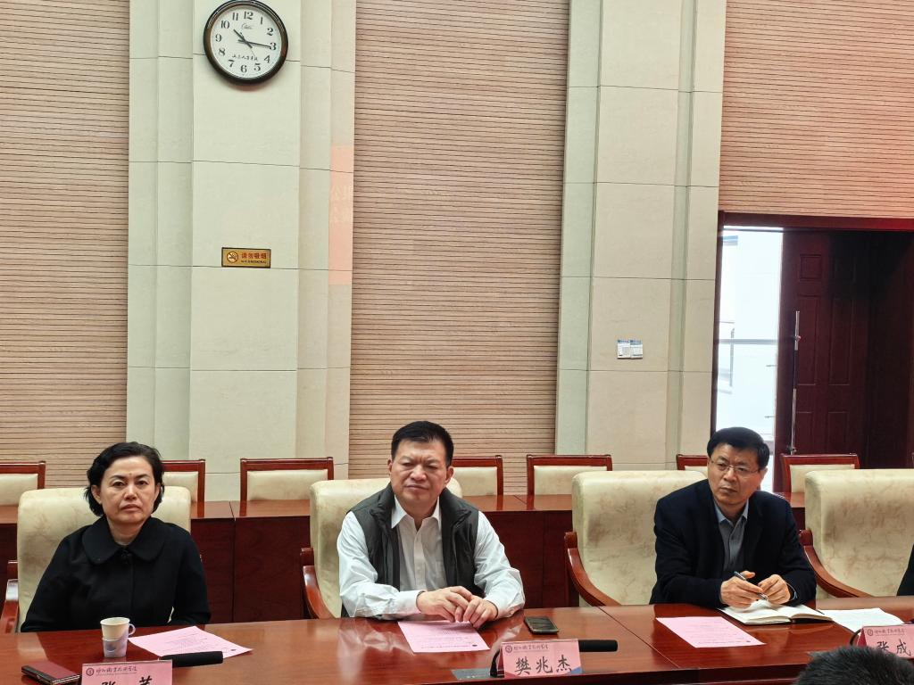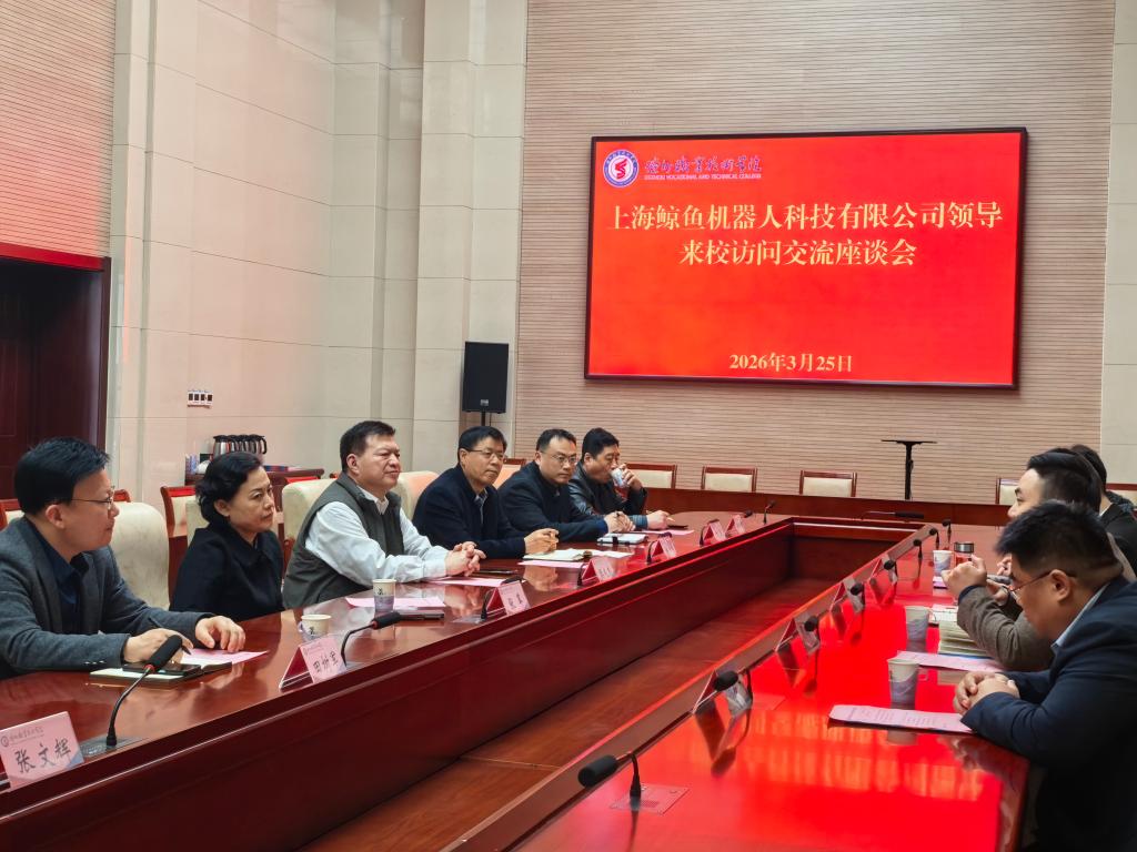 3月25日,上海鲸鱼机器人科技有限公司政府事务部总监张鹏飞一行来我校考察交流。校党委书记樊兆杰见面交流,市政协副主席、副院长张苹陪同调研并主持座谈会。