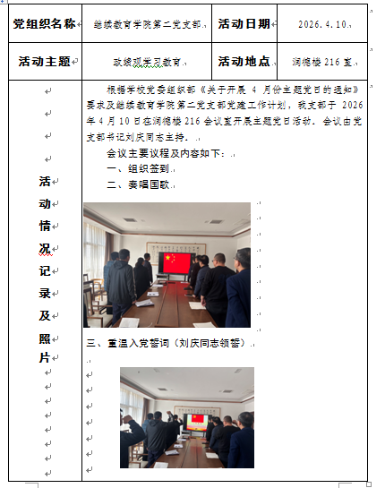 继续教育学院党总支第二党支部“党员活动日”纪实表2026年4月10日